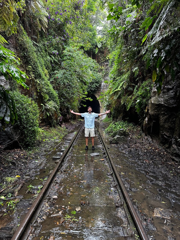 A previsão já era de chuva então só descansamos até a hora do check out e decidimos ir voltando para Sydney. Lembrei de um túnel que eu queria ver em Helensburgh e paramos no caminho. Para achar, você tem que colocar Old Helensburgh Tunnel e ir para o outro lado da rua pois o túnel que ele marca não tem nada de especial.