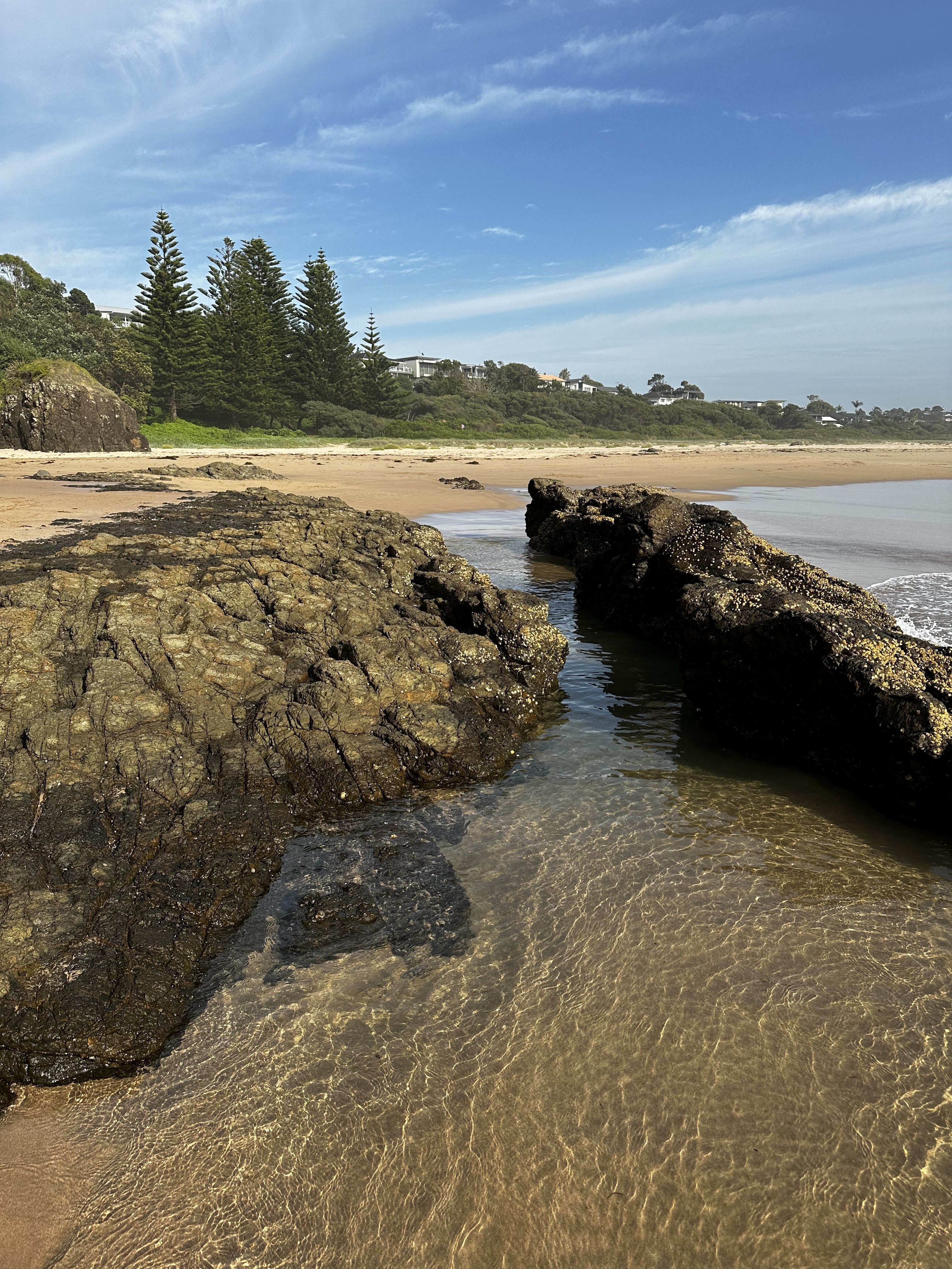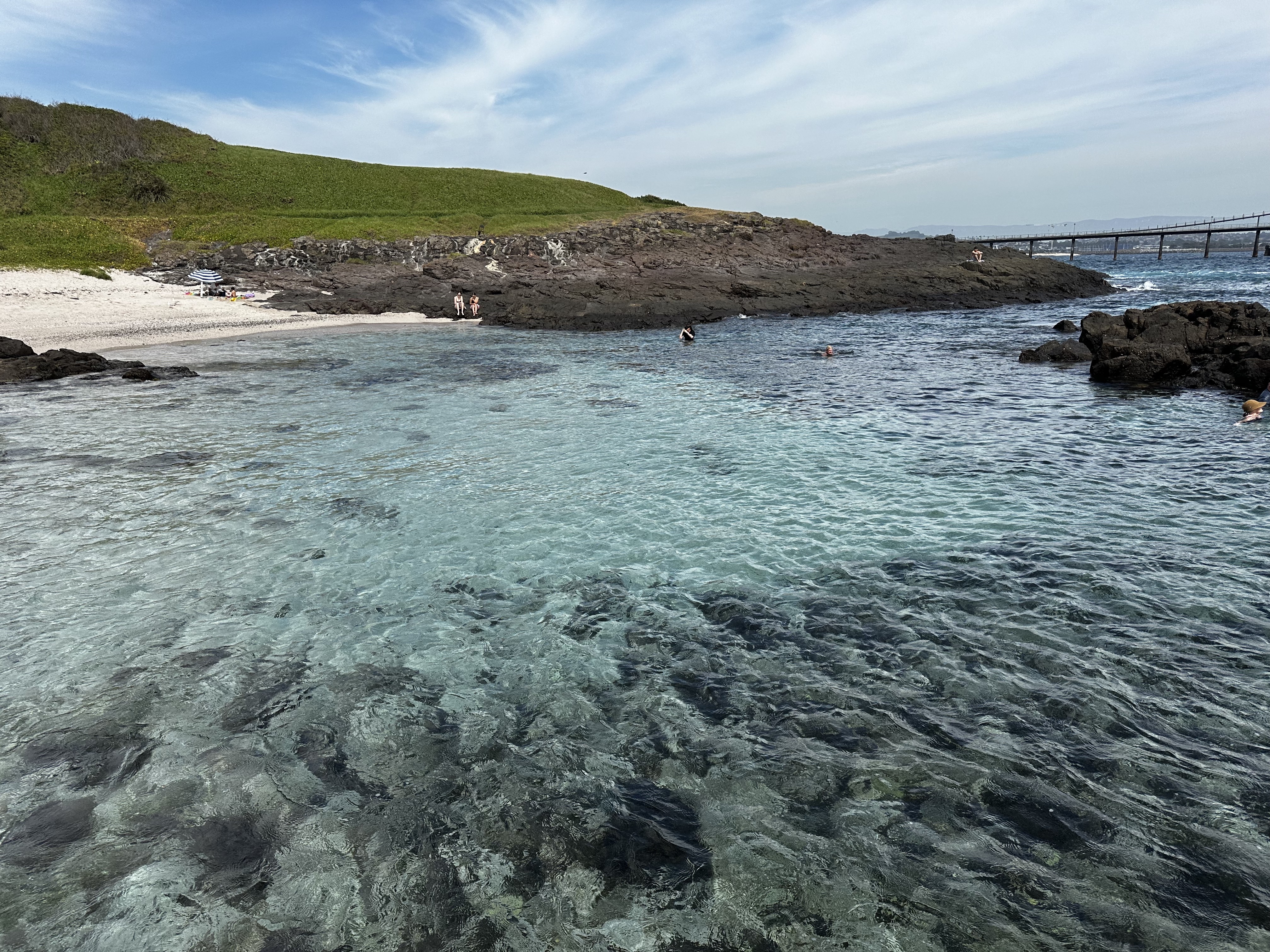 Se no fim de tarde ela já tinha me chamado a atenção porque adoro praias pequenas, de manhã, com o sol a mil, ela me deixou sem palavras e ganhou o título de uma das praias mais bonitas da costa leste da Austrália – junto com as de Jervis Bay lógico!
