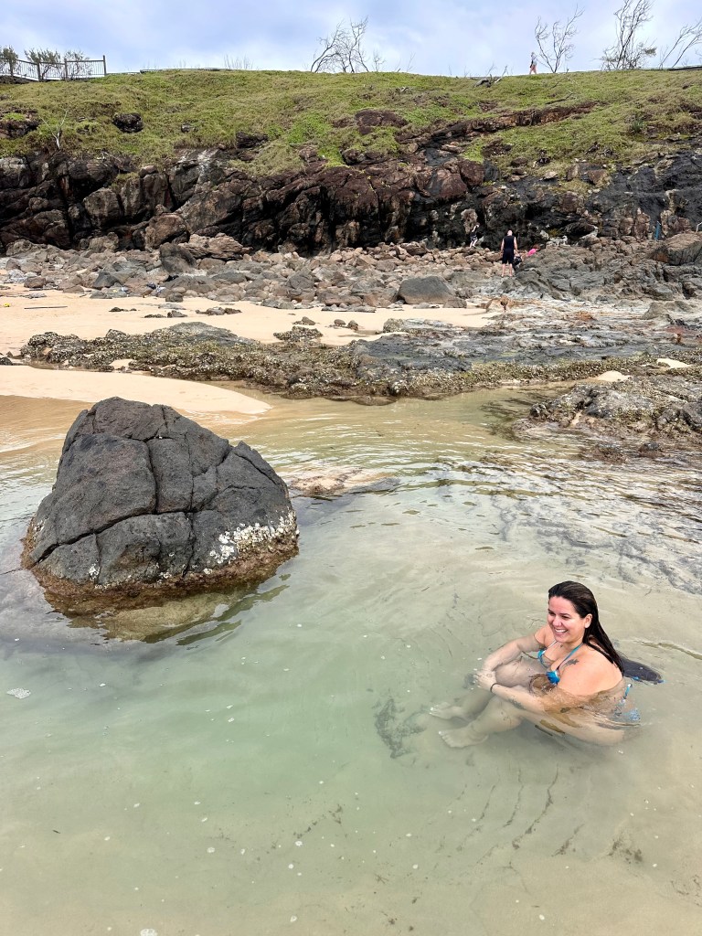 O sol ficou brincando de esconde esconde com a nuvem mas de novo, impossível não entrar na água que tinham partes quentinhas até além de vários peixinhos – um aquário a céu aberto. Outra coisa que achei interessante, não dá para nadar na praia mas sim nessas piscinas naturais formadas pelo mar que entra pelas pedras . Mesmo sendo mar não tive a sensação de “grudar” quando sai da água e nem dela ser salgada.