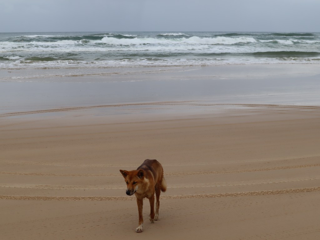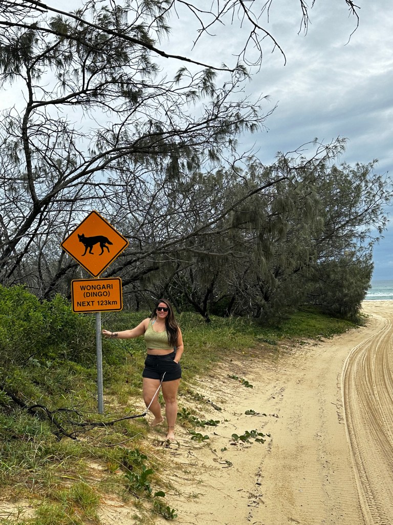 Chegamos no hotel já fim do dia e a estrada mesmo que sem iluminação e um pouco de chuva, foi de boa. Fomos rapidinho ali ver a praia e o resort tinha uma cerca para impedir os dingos de entrarem, além de ser necessário levar tipo um cano fininho para afastá-lo caso ele decida se aproximar. Os dingos são um cachorros selvagens comuns em alguns lugares na Austrália – incluindo a K´gari Island. Pedimos uma pizza no restaurante do hotel (ruim) e fomos dormir.