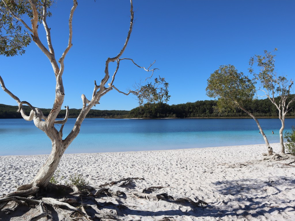 Pela ilha tem mais alguns lagos além dos que mencionei outros como o Basin Lake, Lake Boomanjin e Ocean Lake além de muitas árvores lindas e diferentes e diversas trilhas para fazer a pé também. Um prato cheio para os amantes da natureza! Caso você queira, também tem a opção de tours de 1 ou mais dias para conhecer K´gari Island sem se preocupar com dirigir – o que nós particularmente achamos bem tranquilo.