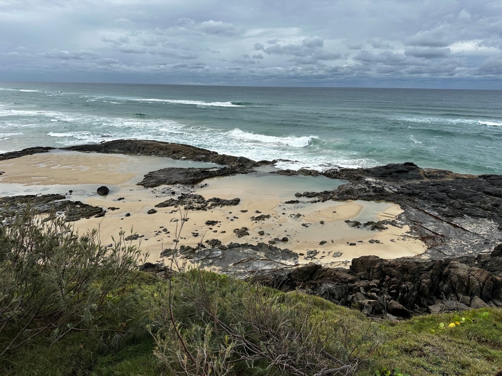Cinco minutinhos dali tem um navio que naufragou em 1935 – o S. S. Maheno. Uma parte dele está dentro da areia e permanecem os destroços a vista que dependendo da maré dá para ver mais ou menos. Importante: não pode entrar no navio pois não tem garantia nenhuma que partes dele não vão se soltar/cair/desmontar, então não arrisque. Fora que o mar é bem bravo e inclusive não se pode nadar nas praias da ilha por isso e também pela quantidade de tubarões que ali habitam – nós vimos 3 baleias bem próximas a areia então imagino que também seja bem fundo.