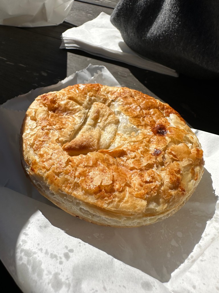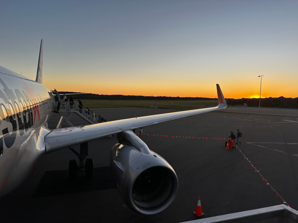 O trajeto levou uma hora e conseguimos ver golfinhos – e eu acho que tinha tubarão também! Uma coisa para se notar é o ponto de saída e chegada da ilha pois nem sempre as balsas saem do mesmo lugar. Outra coisa é que tem poucos pontos tem gasolina no caminho da ilha – a gente não precisou abastecer lá, deu para esperar chegar no continente. Chegando em terra firme de novo, fomos lavar o carro e o aeroporto fica 15 minutinhos da onde a balsa chega. Lavamos o carro, abastecemos ($130 de gasolina) e aproveitamos para comer uma torta – clássico almoço australiano – no Pie Pastry Paradise e super recomendo, muito boas e baratas e também ficam literalmente do lado do self car wash. Devolvemos o carro, chegamos no aeroporto e… nosso vôo atrasou! A cada hora que passava, adiavam mais uma hora – no total foram 3 de espera que teria dado para conhecer o centrinho de Hervey Bay mas paciência.