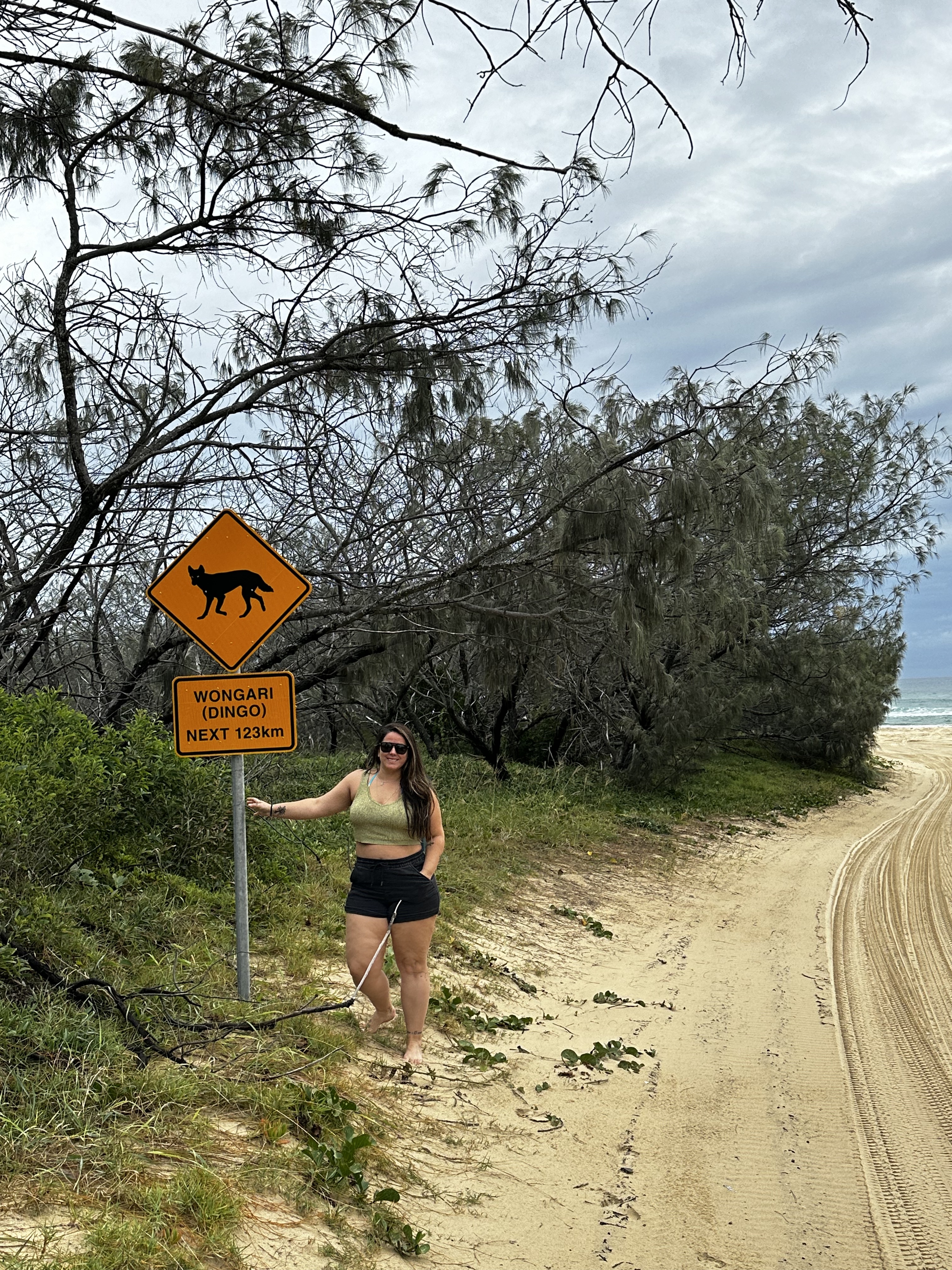Chegamos no hotel já fim do dia e a estrada mesmo que sem iluminação e um pouco de chuva, foi de boa. Fomos rapidinho ali ver a praia e o resort tinha uma cerca para impedir os dingos de entrarem, além de ser necessário levar tipo um cano fininho para afastá-lo caso ele decida se aproximar. Os dingos são um cachorros selvagens comuns em alguns lugares na Austrália – incluindo a K´gari Island. Pedimos uma pizza no restaurante do hotel (ruim) e fomos dormir.