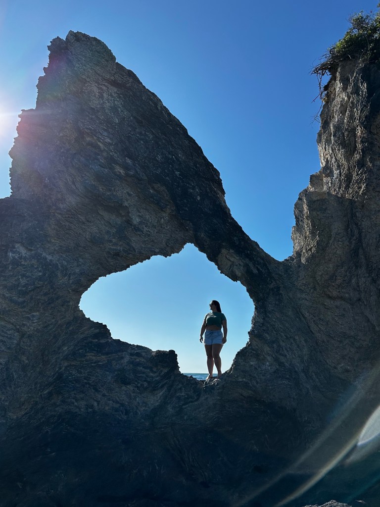 Chegando na praia, mais um show das baleias! O mar ali é mais bravo e também não estava sol então só fomos caminhar para ver a Horse Head Rock e as Glasshouse Rocks. Como a maré estava baixa deu para ir até a Knickers Beach. Achei maravilhoso e recomendo conhecerem.