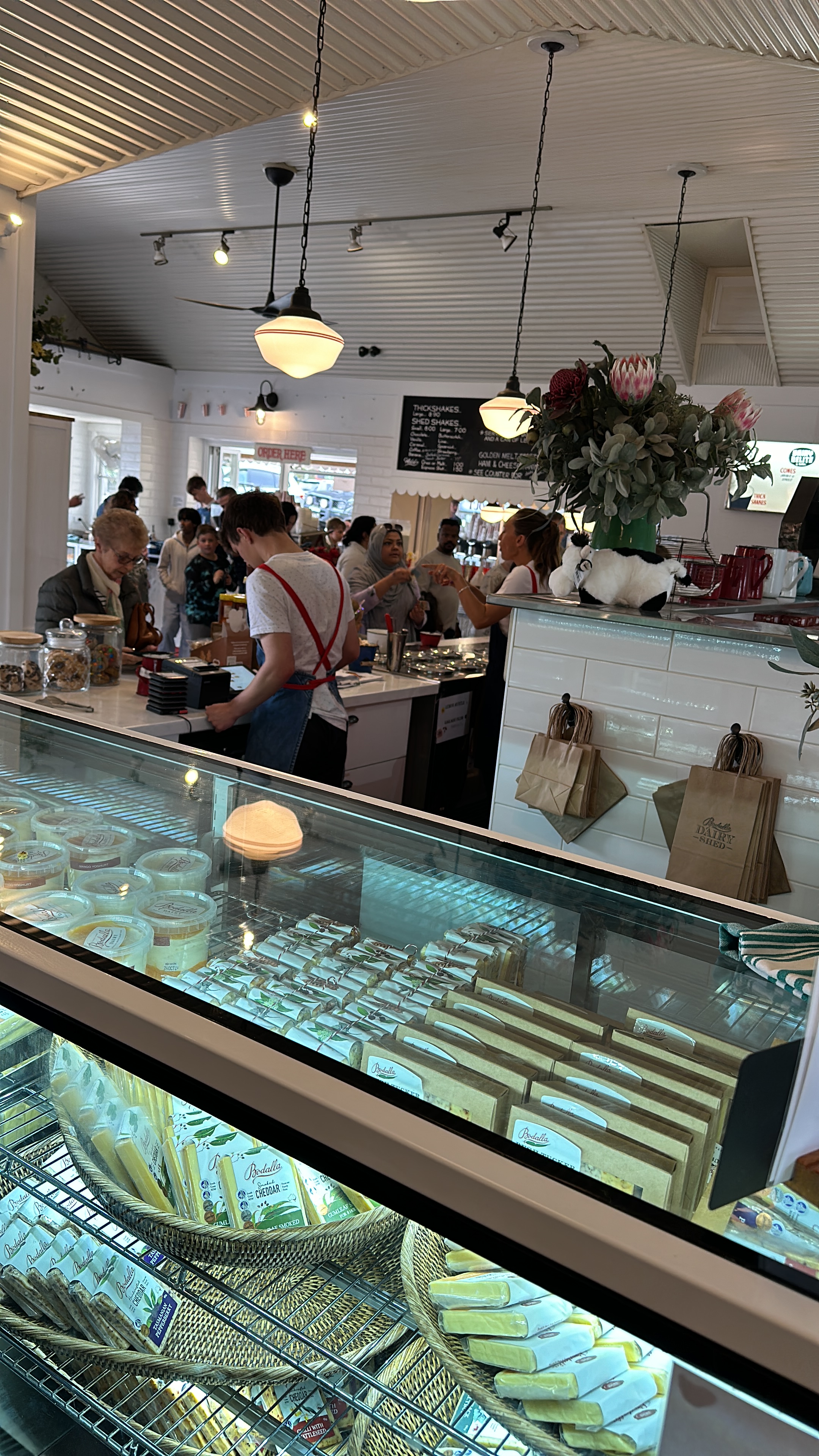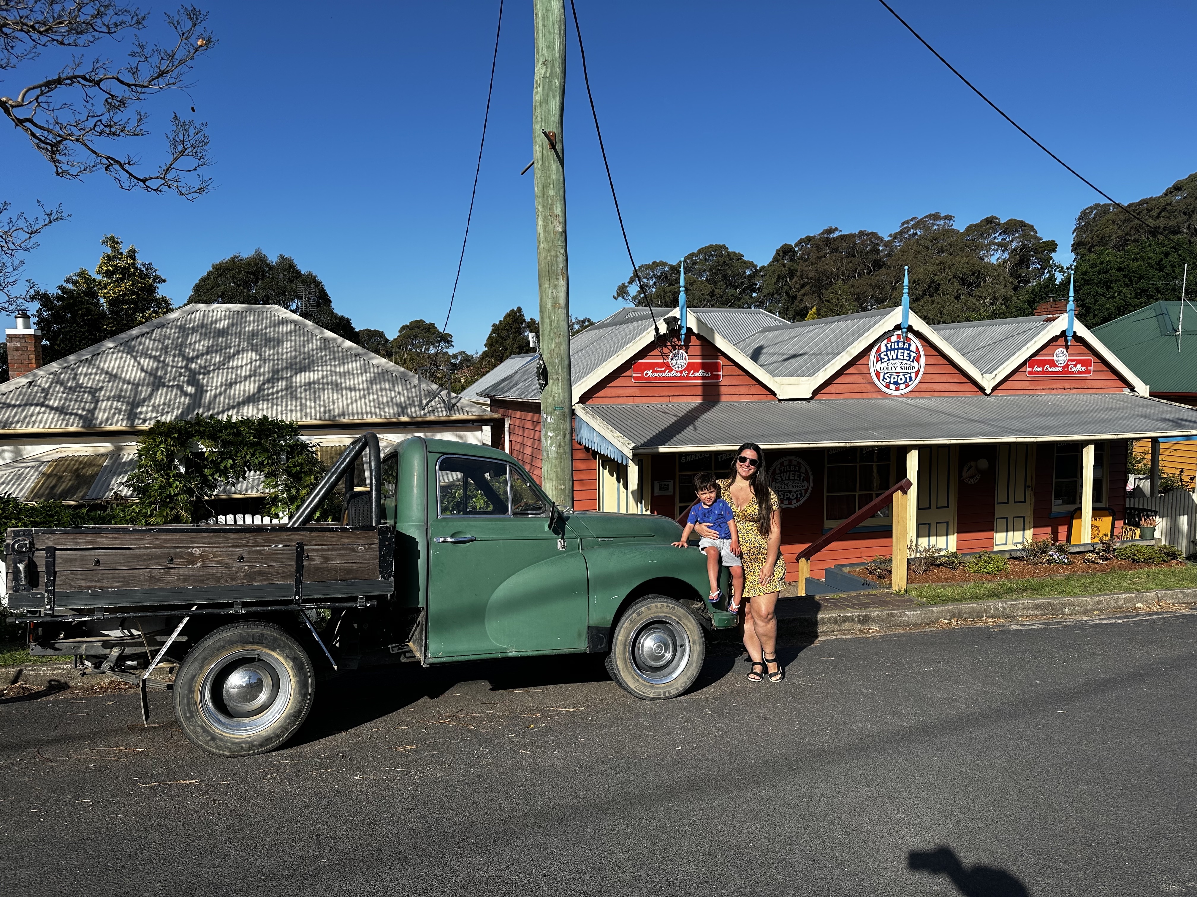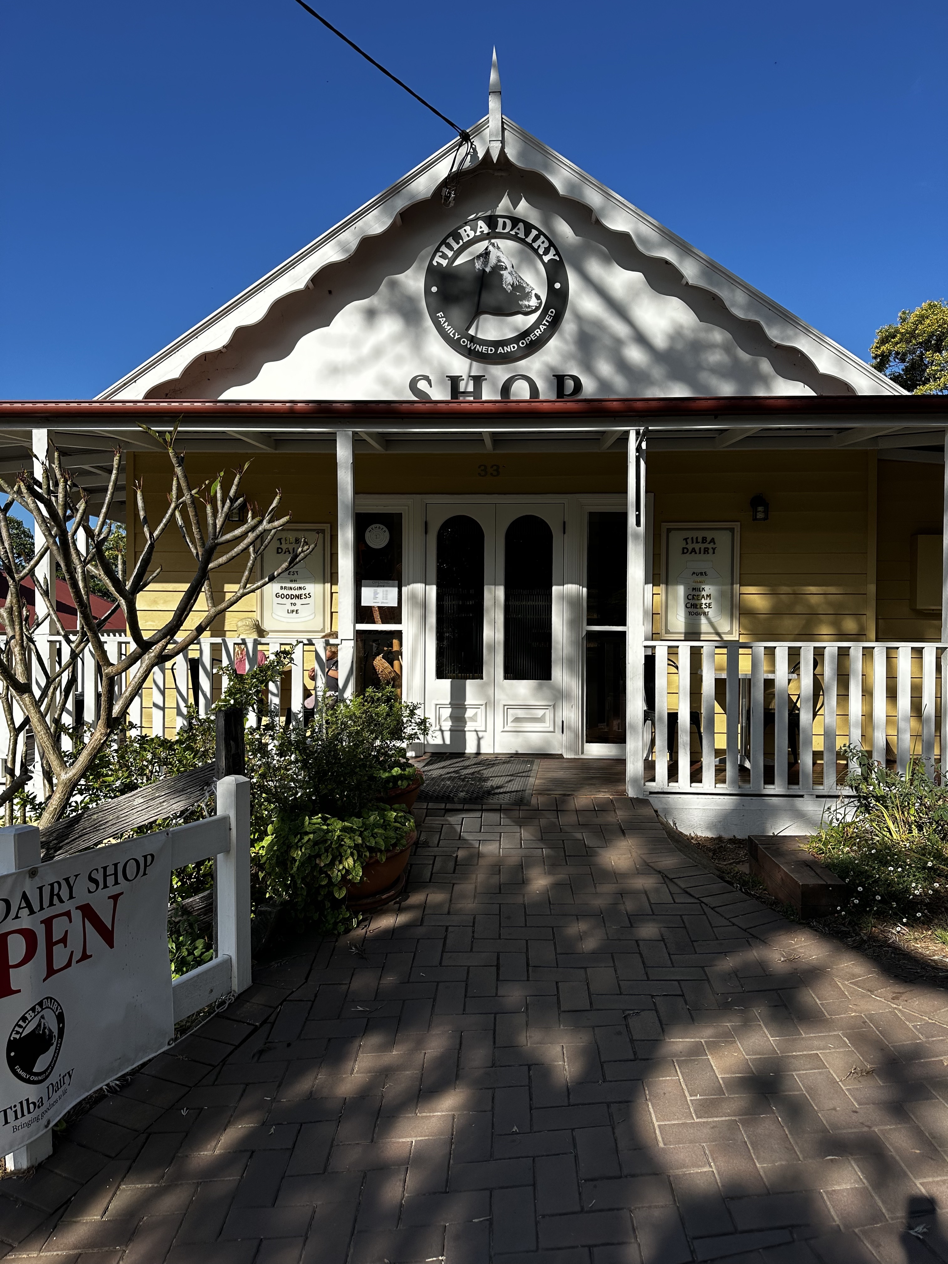Fizemos uma breve pausa no Corunna Lake – ideal para picnics e inclusive tem banheiros – antes de seguir até Central Tilba, um vilarejo que parece ter parado no tempo, um charme de lugar. Como já era fim do dia, a maioria das lojinhas estavam fechadas mas demos sorte de conseguir tomar um sorvete caseiro no Tilba Dairy Shop. A região é conhecida pelos seus produtos lácteos.