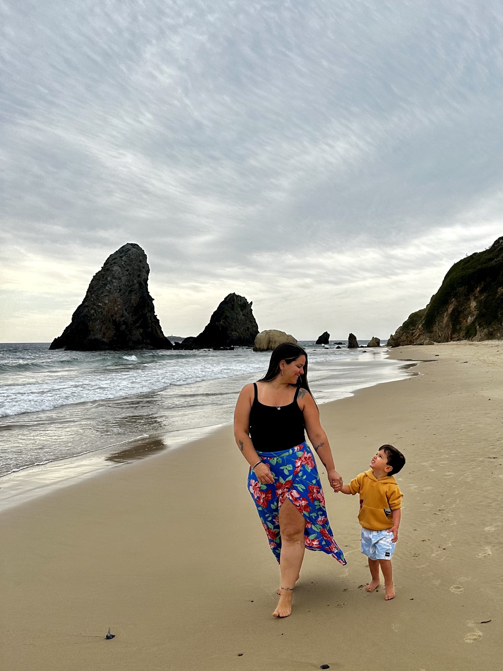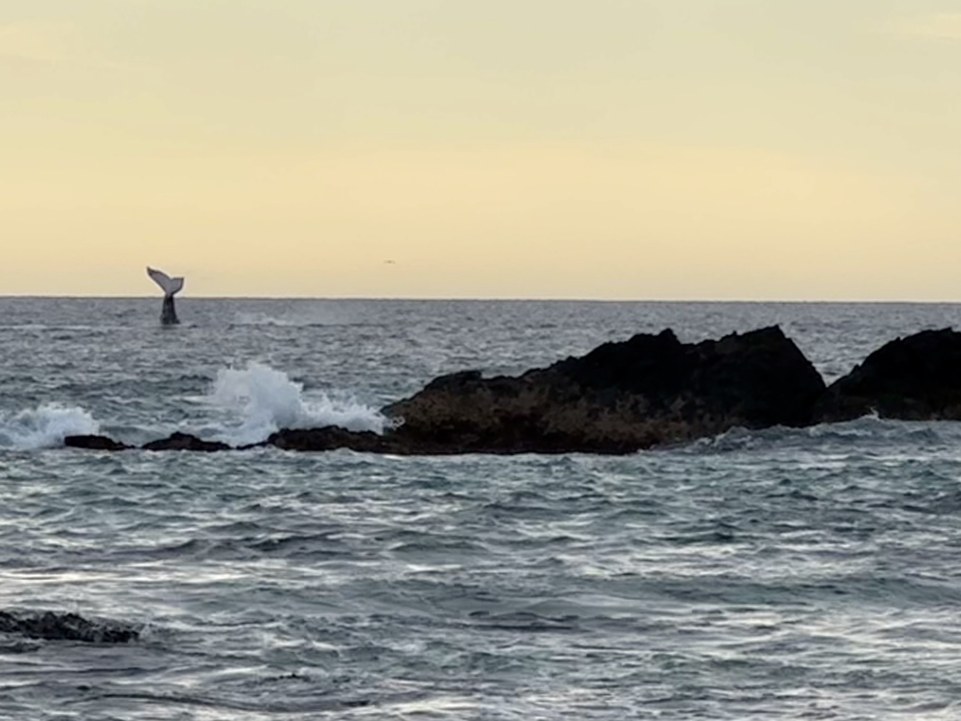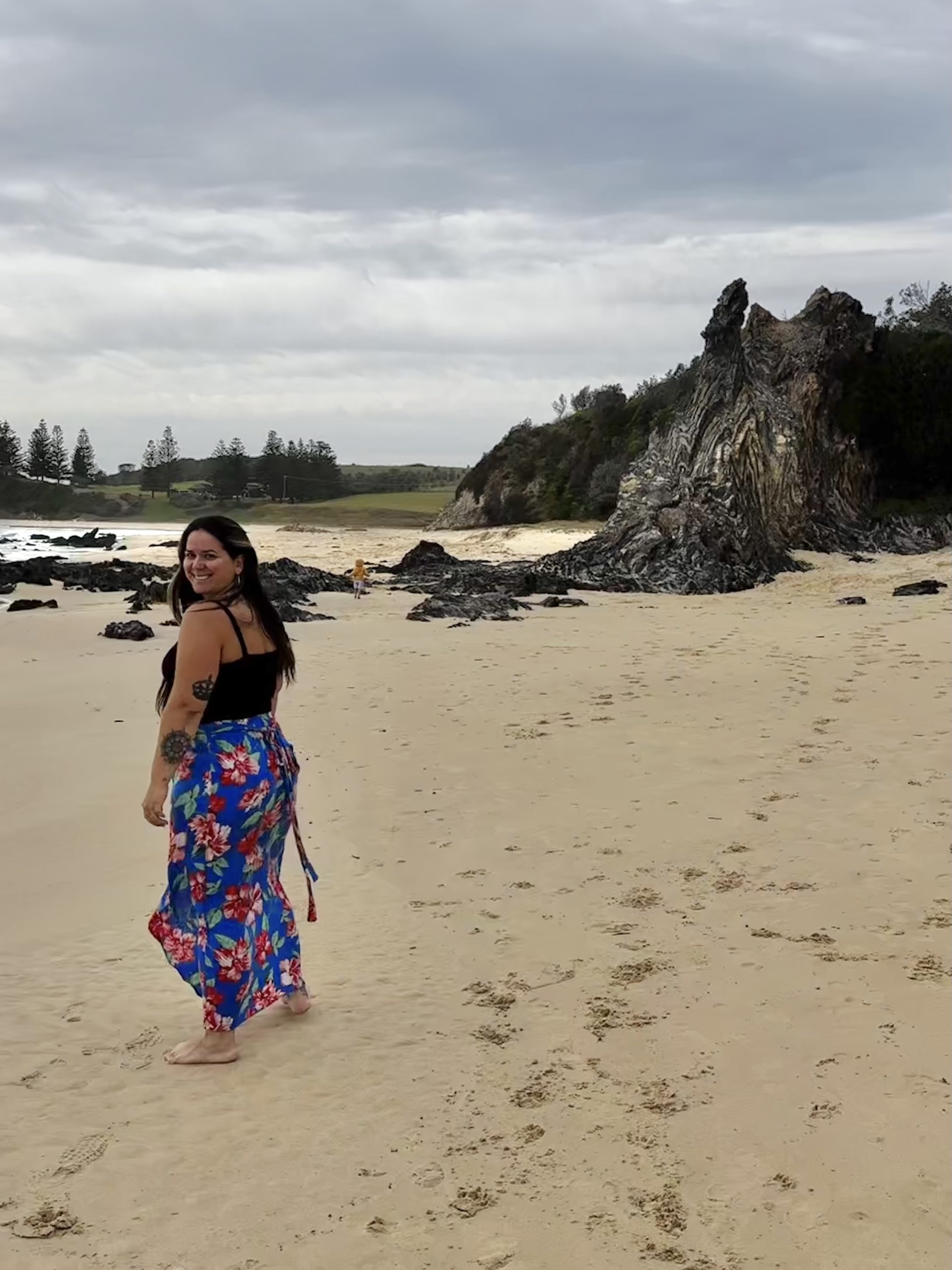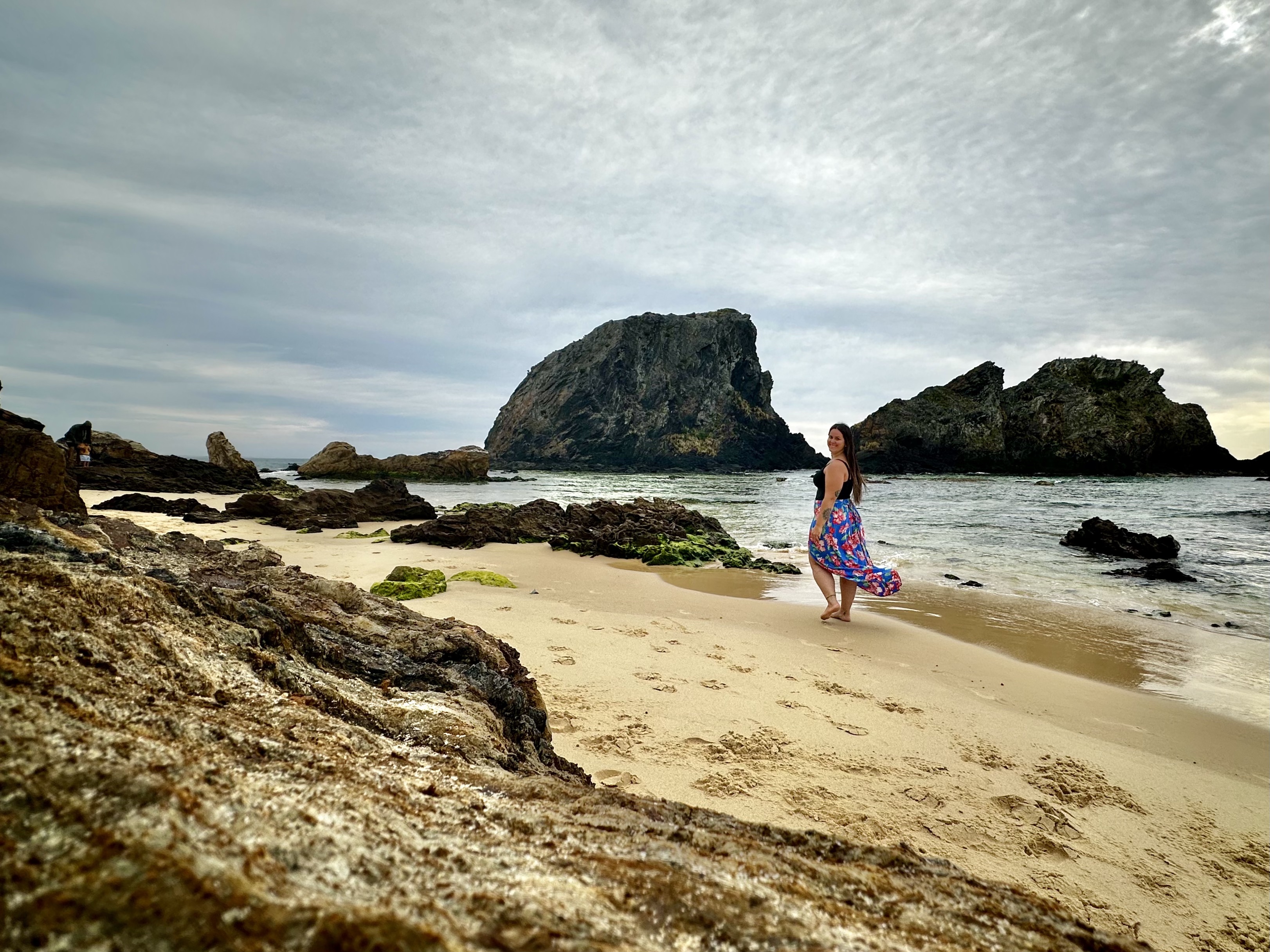 Chegando na praia, mais um show das baleias! O mar ali é mais bravo e também não estava sol então só fomos caminhar para ver a Horse Head Rock e as Glasshouse Rocks. Como a maré estava baixa deu para ir até a Knickers Beach. Achei maravilhoso e recomendo conhecerem.
