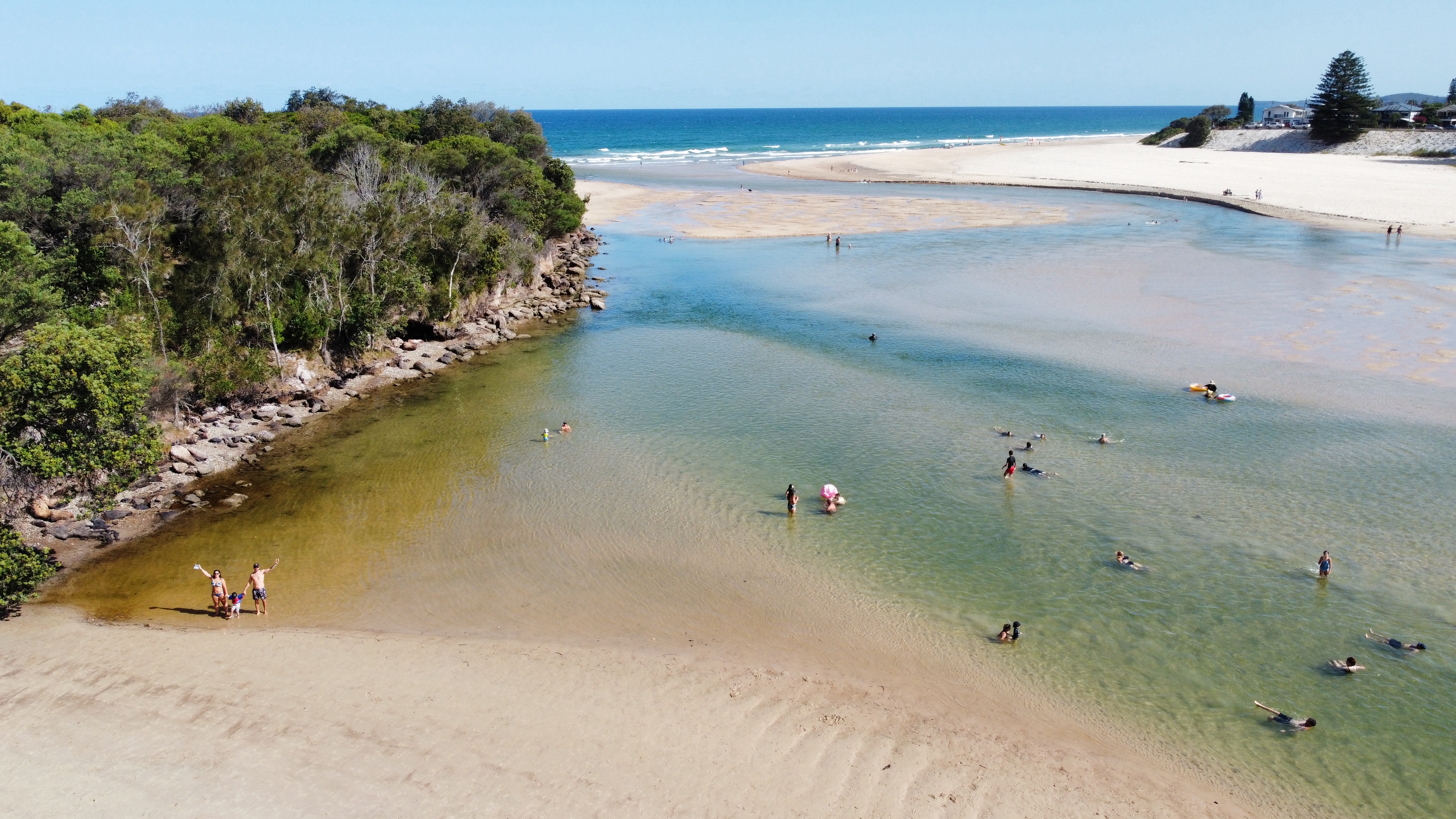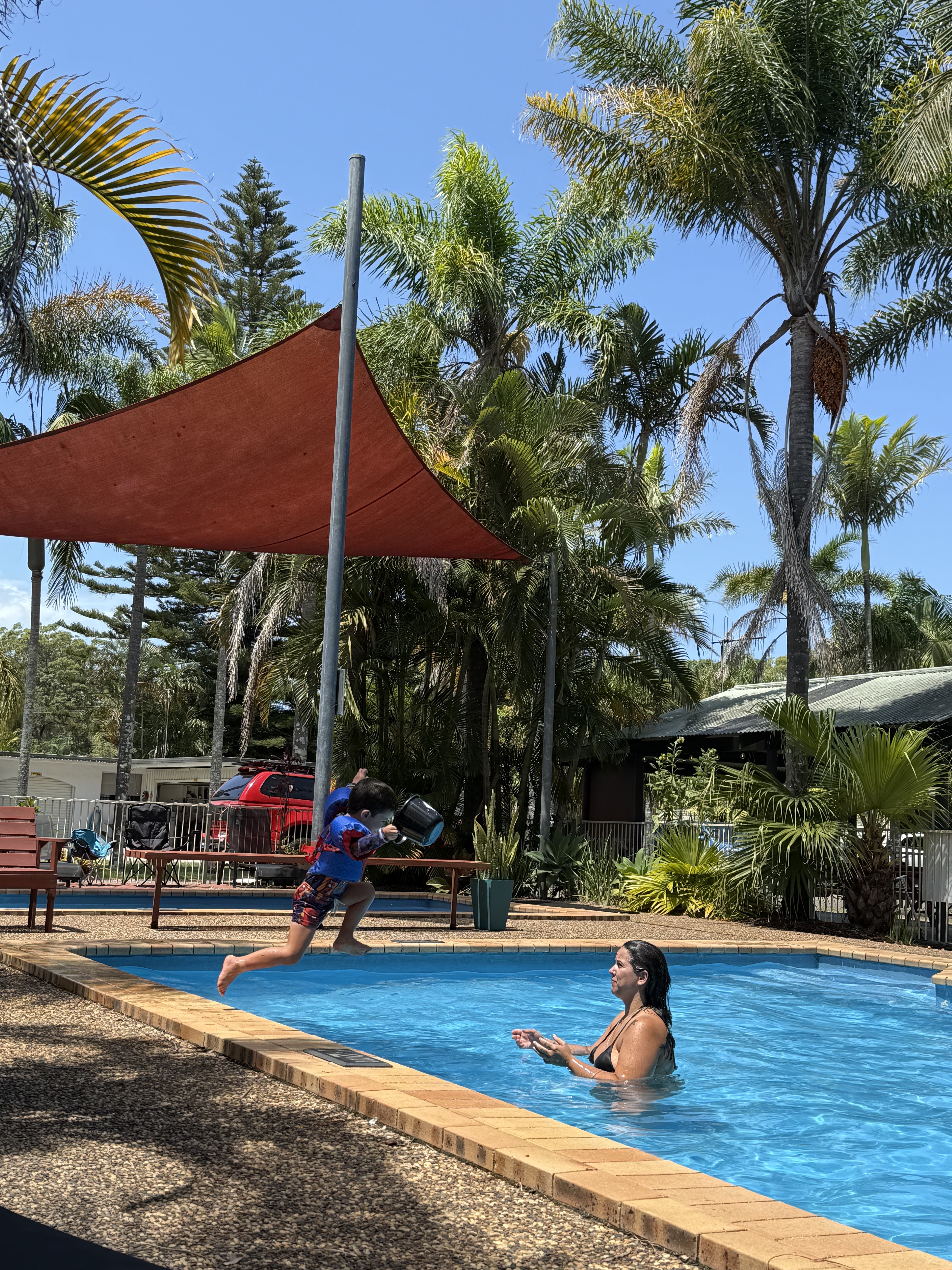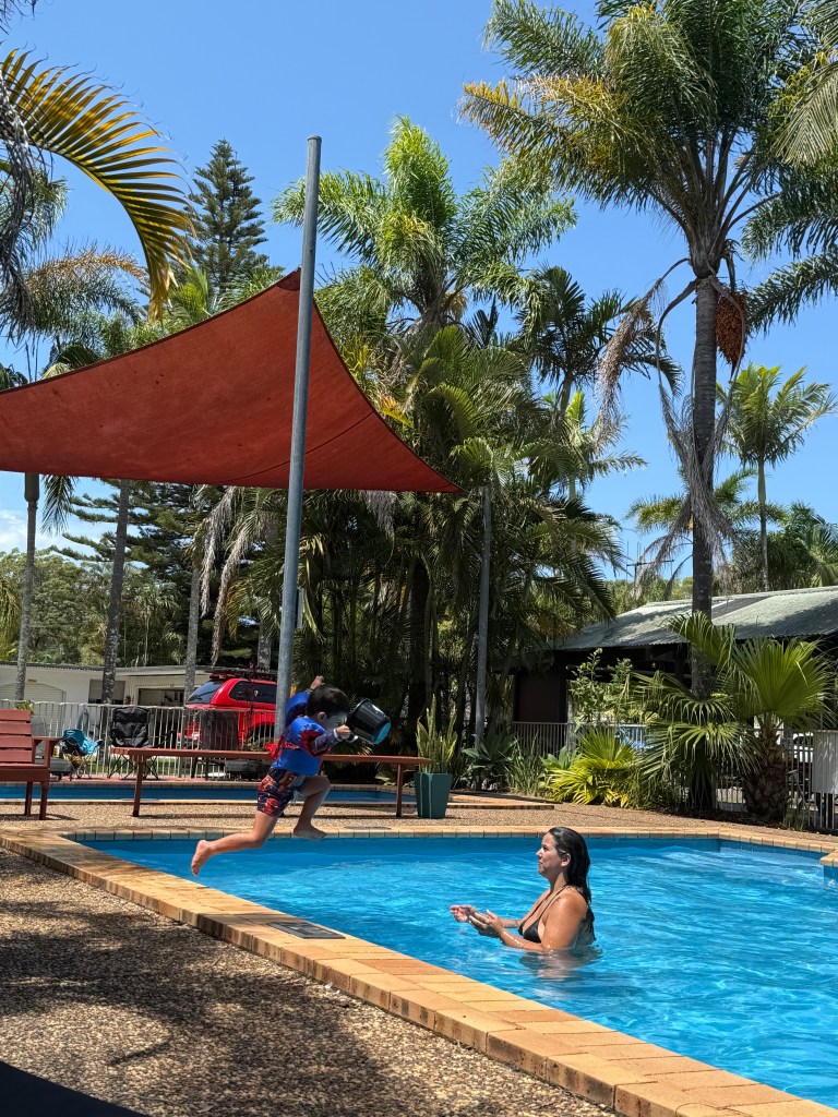 Essa viagem foi total com intuito de descansar e ficar tranquila mesmo, sem correria de explorar muitos lugares num mesmo dia. Hora da soneca e aproveitamos para ir até o Lake Cathie que tinha lido ser muito gostoso para ir com crianças – e foi. Apesar da correnteza, o cantinho era rasinho e tranquilo e a praia conta com toda a estrutura de churrasqueira, banheiros e parquinho também. Fizemos nosso macarrão no nosso fogão portátil e almoçamos por lá mesmo. Ficamos a tarde toda lá aproveitando – demos muita sorte de o tempo estar super bom e ensolarado.