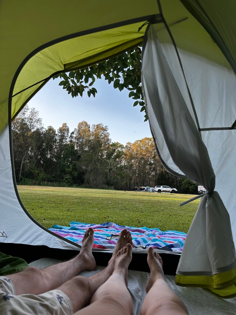Depois de uma viagem longa, armamos a barraca, banho e cama!