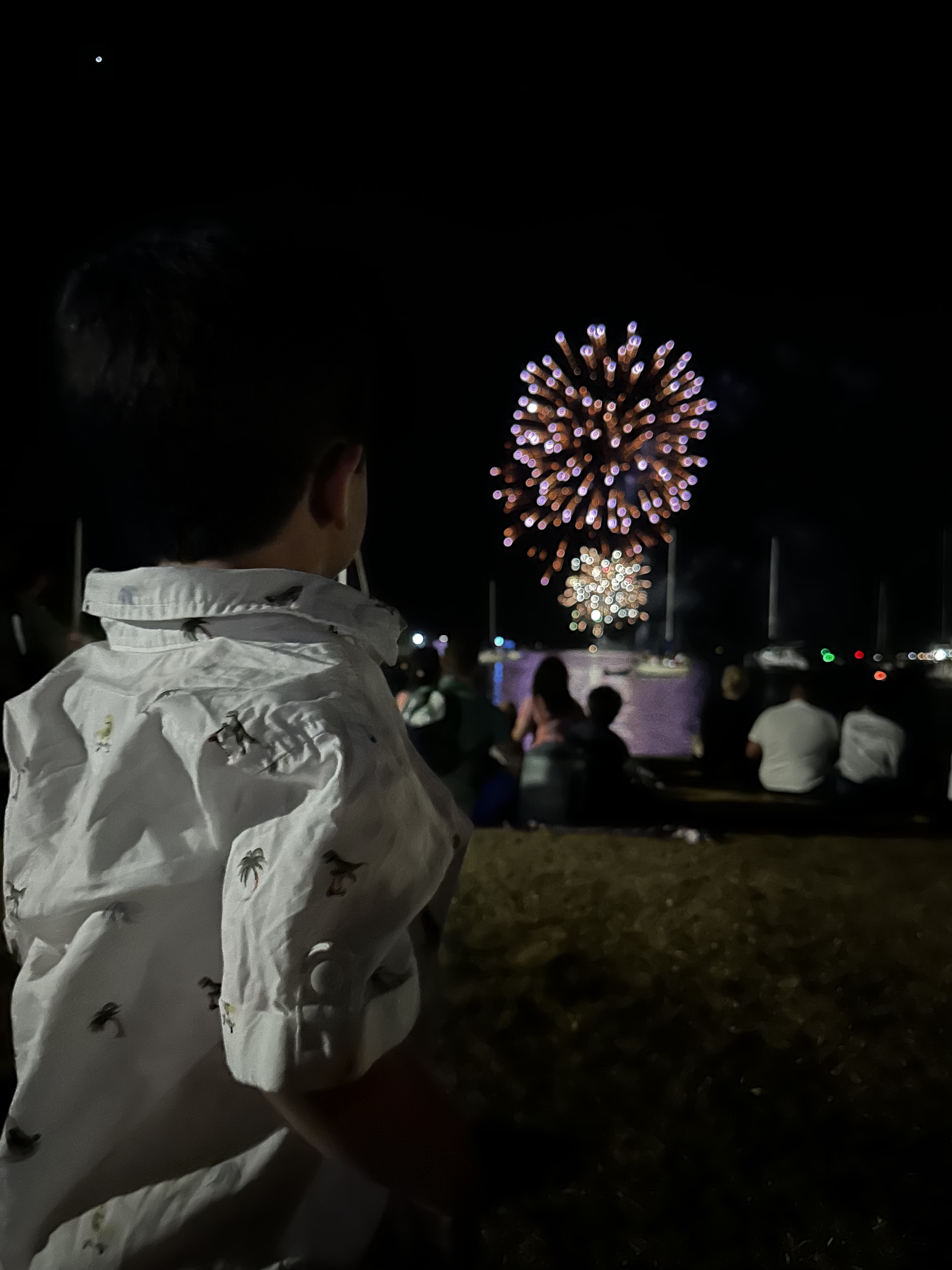 Voltamos pro camping, nos arrumamos, jantamos e 8:30pm fomos para ver os fogos das 9pm que é comum aqui na Austrália para que as crianças possam participar. Foi bem bonito, durou cerca de 10 minutos e estava cheio mas bem tranquilo. Os fogos saíram de um barco no Hastings River bem em frente ao The Westport Club.