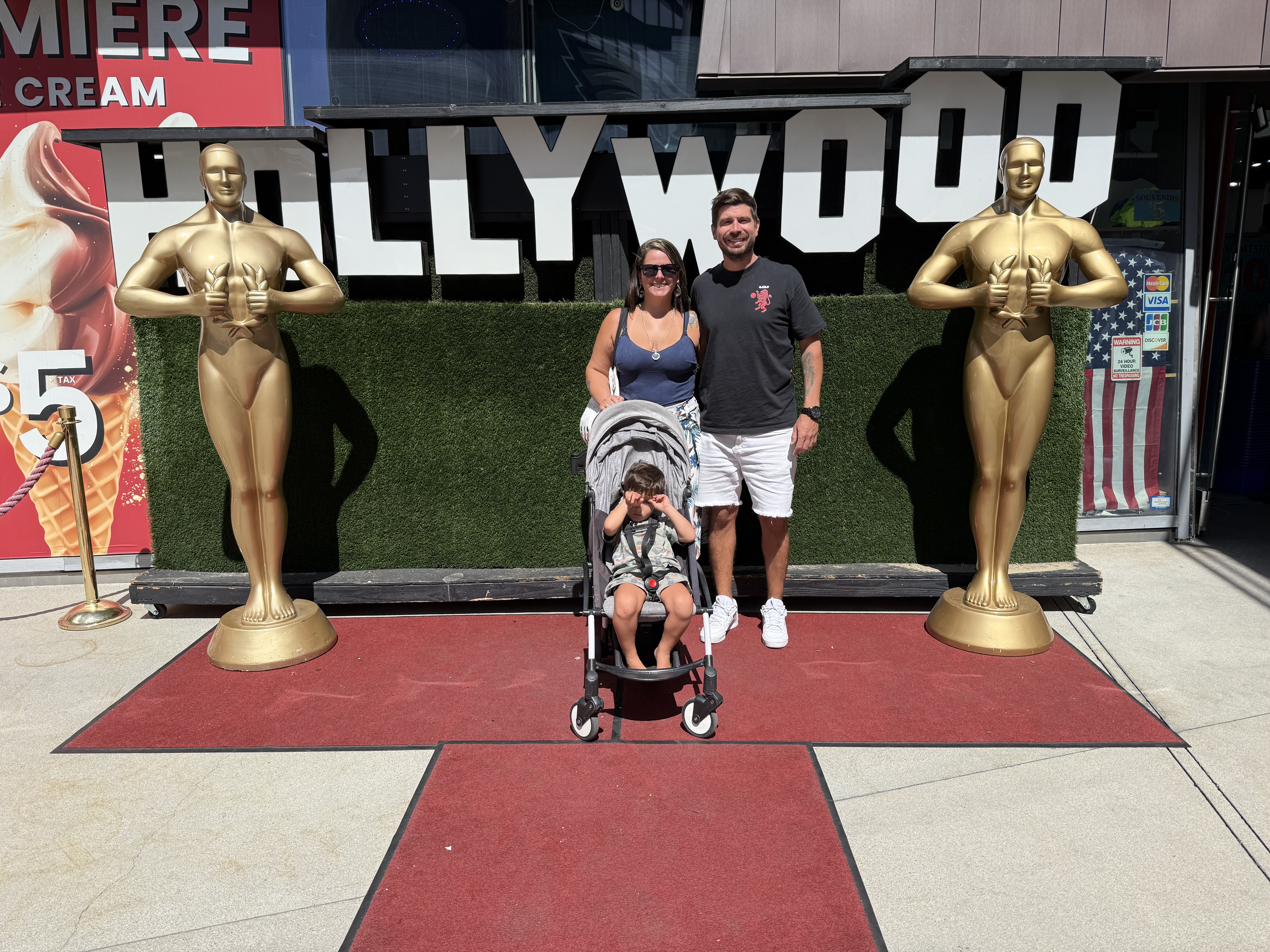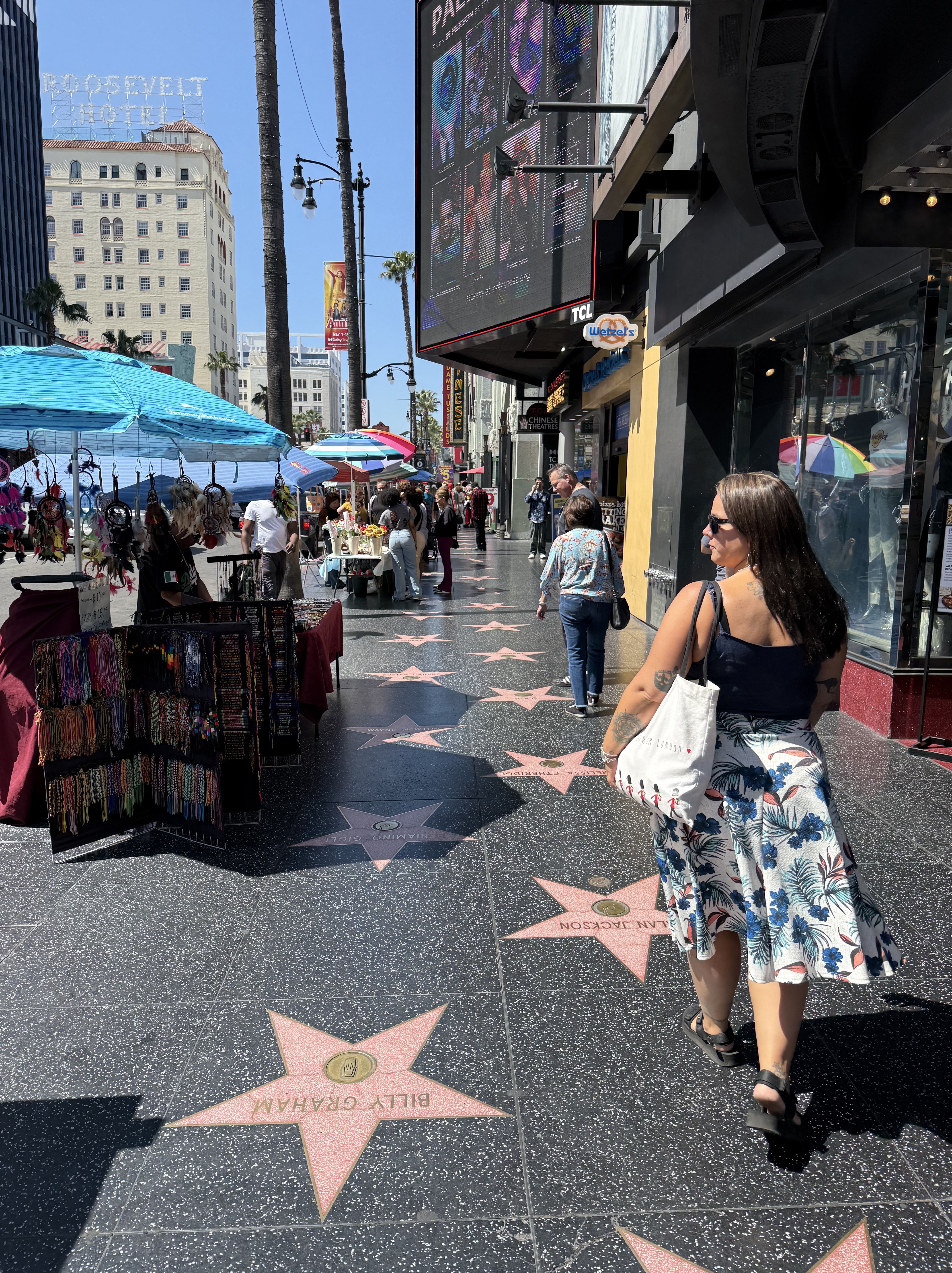 Uma breve pausa no parquinho para meu filho brincar um pouco e seguimos até Hollywood Walk of Fame. São vários quarteirões com as estrelas das celebridades no chão, além de barraquinhas e muitas lojinhas de souvenir (as mais baratas que vi na cidade). Lá também fica o teatro aonde é celebrado o Oscar – o Dolby Theatre. Eu ficaria mais tempo explorando a região, achei interessante e com várias coisas para ver além da Calçada da Fama em si.