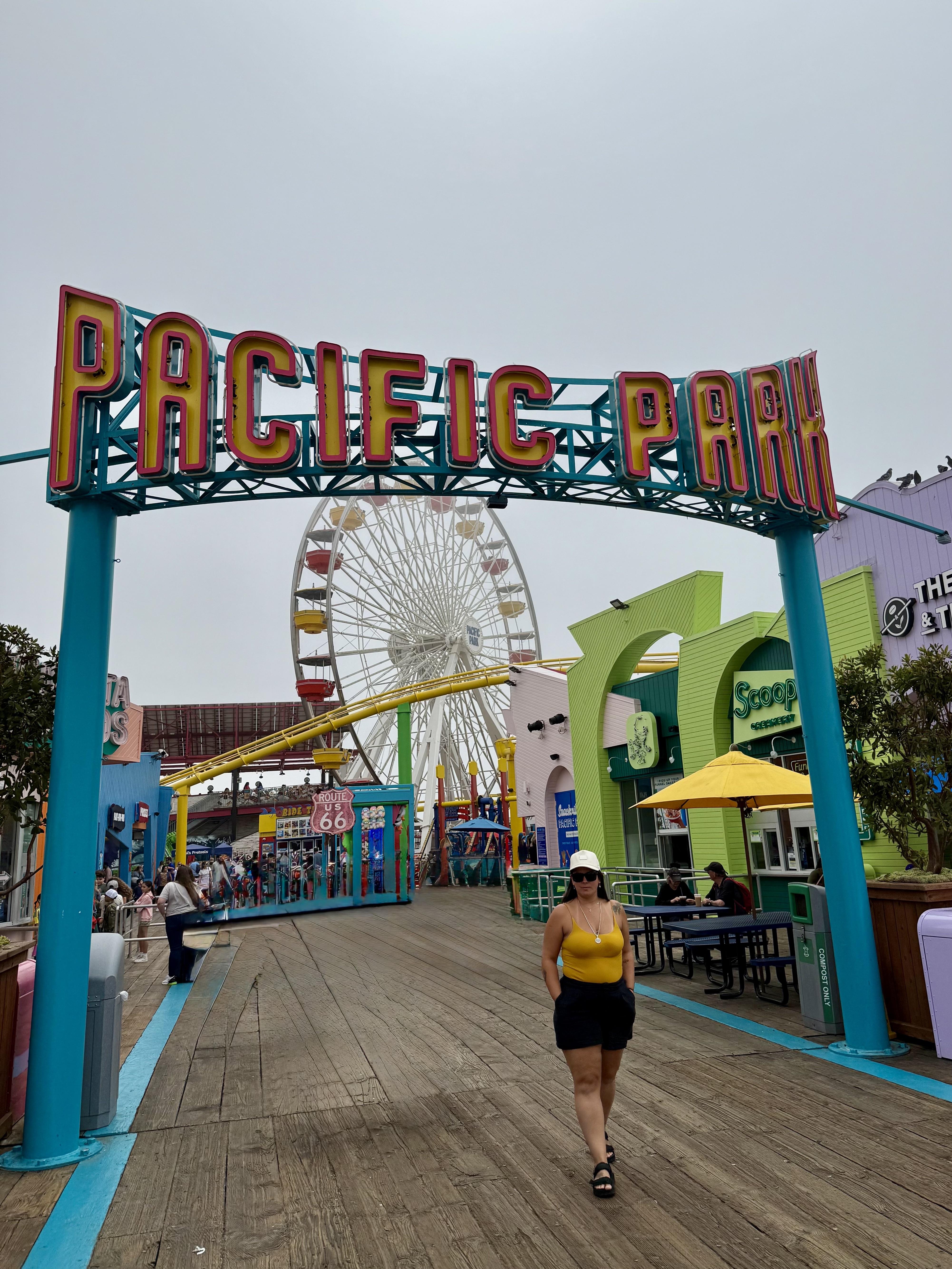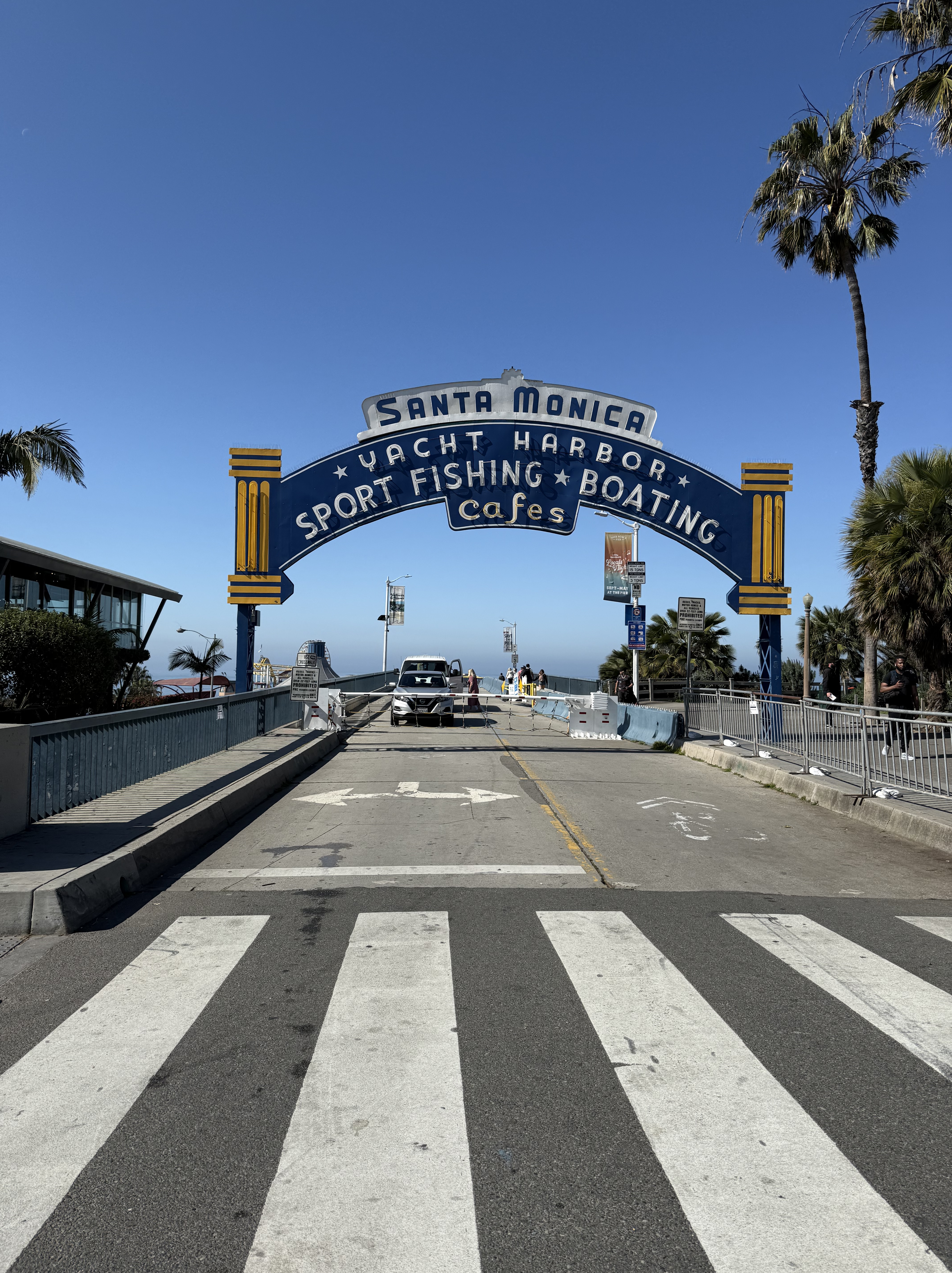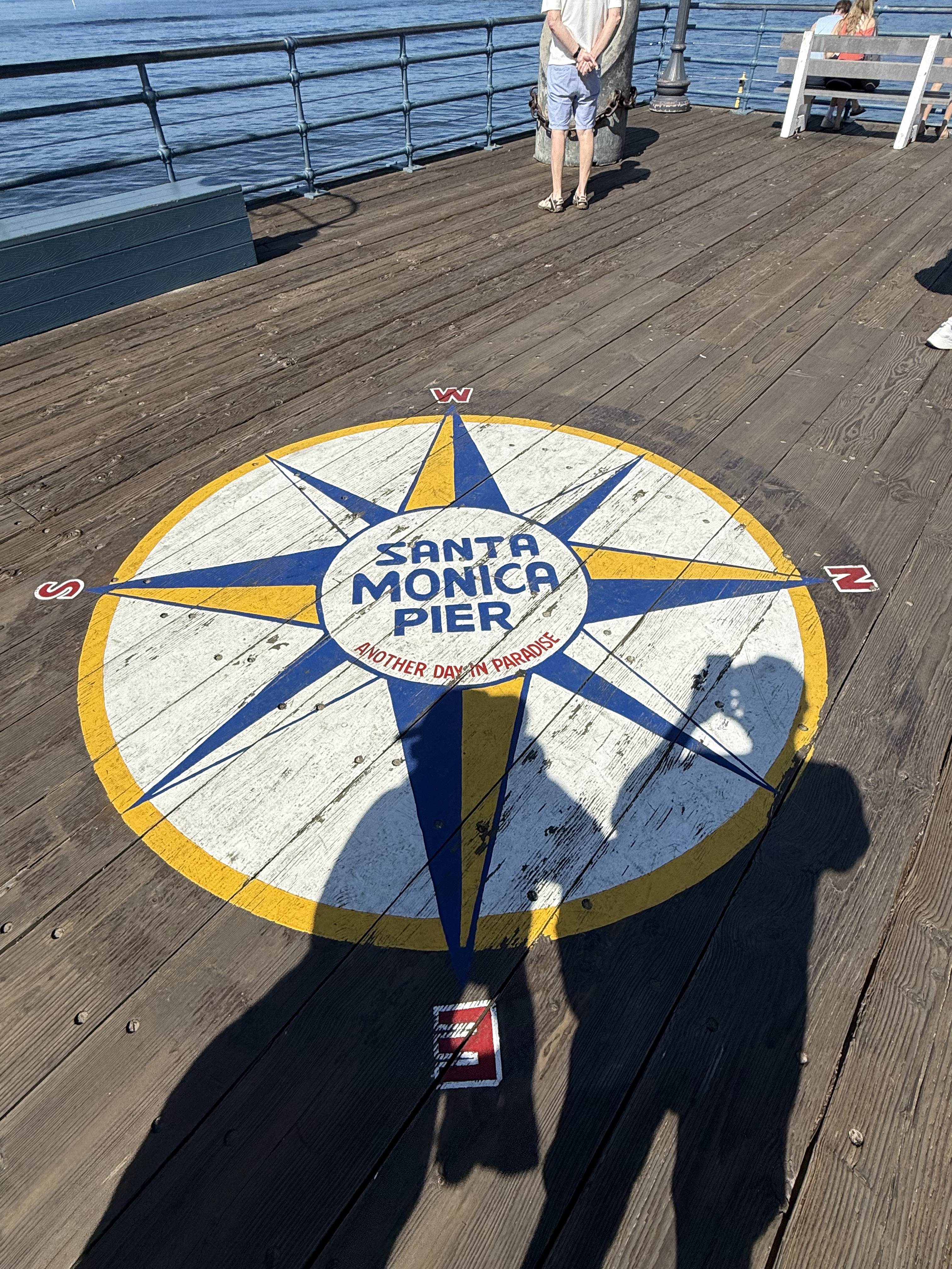 Previsão de 25 graus e a programação seria praia então organizamos tudo para começar o passeio no Santa Monica Pier e finalizar em Venice Beach para aproveitar mais. Pegamos um ônibus até lá, levou uns 20 minutos e foi $2, bem tranquilo e vazio.