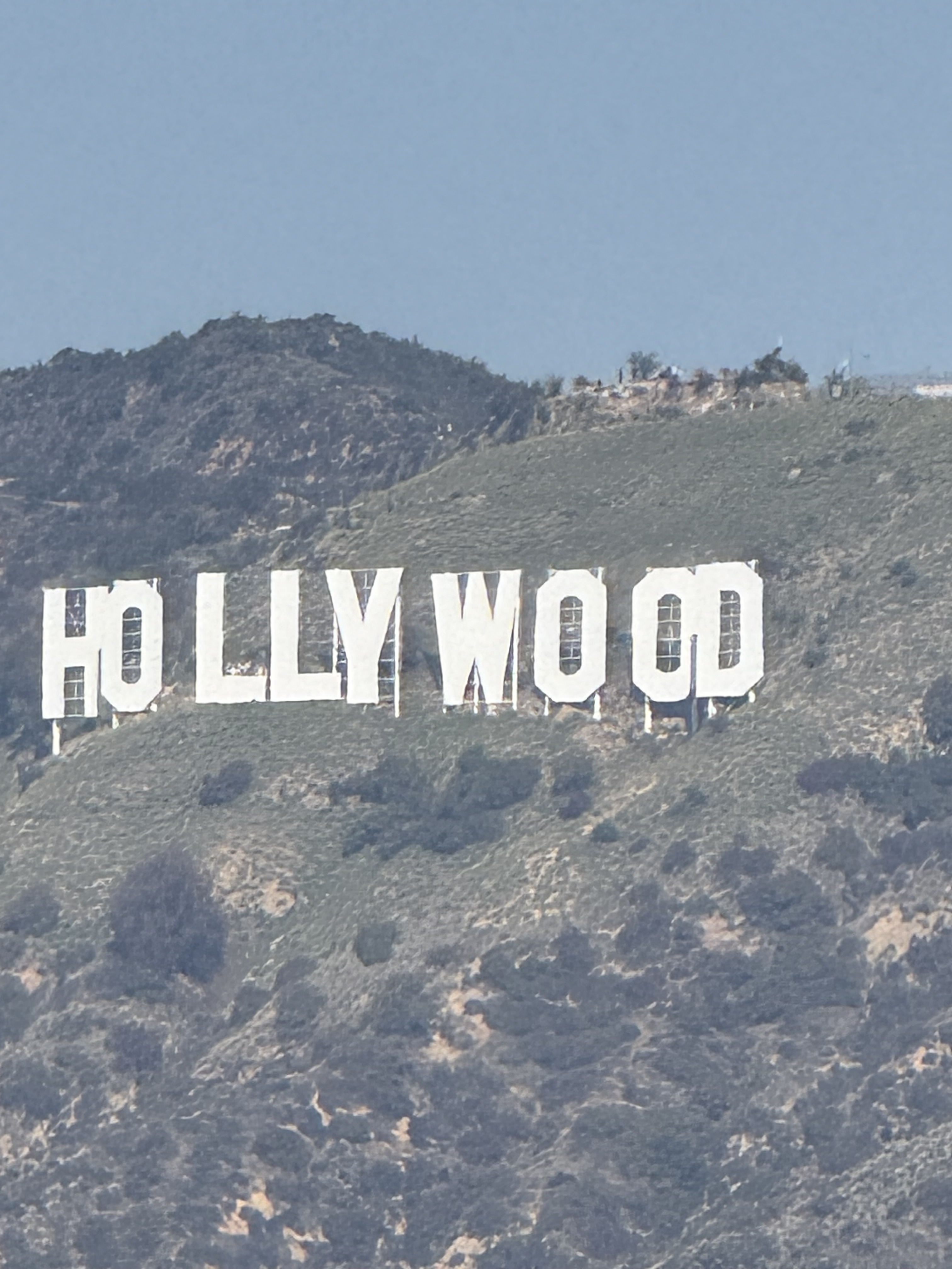 Primeira parada do dia foi no clássico letreiro de Hollywood. Fiquei sabendo que as letras foram colocadas em 1923 para vender casas de um condomínio por ali porém quando a parte de filmagens de externas começou a migrar para lá, decidiram manter para chamar a atenção e divulgar os grandes estúdios da região se tornando assim um famoso marco da cidade.