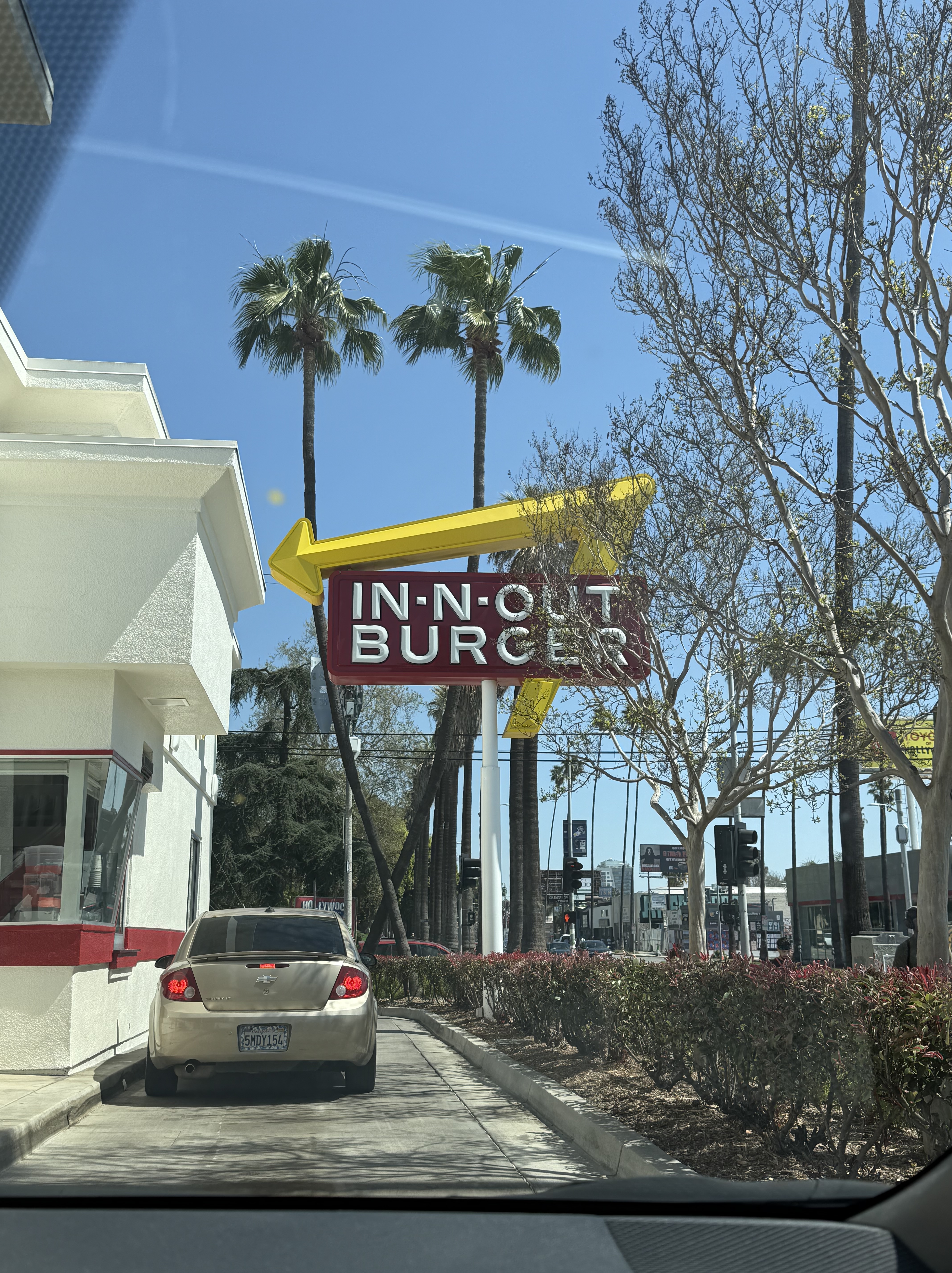 Almoço não podia ser outro – In N Out Burger ali de Hollywood mesmo. Pedimos pelo Drive-Thru e estava uma delícia. Bom, barato e muito gostoso – tanto o lanche, quanto as batatas e o milkshake. Recomendo!