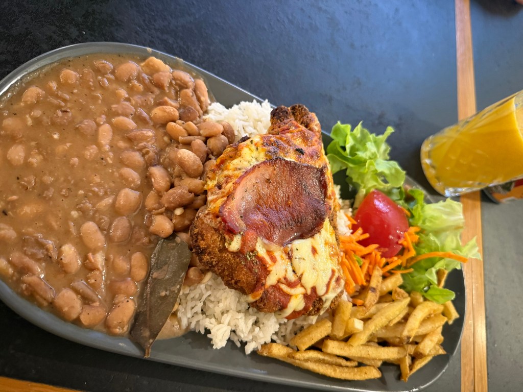 – Casa Brasil: bateu vontade de comida de verdade e comemos um PF lá com parmegiana – o prato é grande mas a carne não tanto. Adorei que tinha suco natural – e um bolo de pote maravilhoso!;